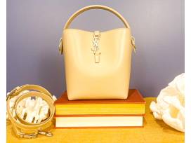 Saint Laurent Bag - Le 37 Small YSL Bucket Bag in Spazzolato Leather in Sea Salt.