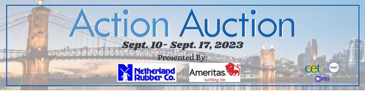 If you purchase a gift certificate or tickets, your item will be mailed to you. For items that have been purchased, you will need to schedule a pick-up appointment at CET or ThinkTV. Pick-up appointments at CET begin on Wednesday, September 20 at 10:00am. To schedule a time to pick up your purchase at CET, click here Please note that all certificates will be mailed, and will not be available at a pick up appointment. To schedule a time to pick up a purchased item at ThinkTV, please call Mary at 513-345-6579.