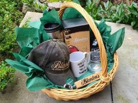 Swag and swigs for the Blanton's lover in your life: a Blanton's baseball cap, Blanton's maple syrup, a Blanton's travel tumbler, a Blanton's rocks glass, a Blanton's barrel stave bottle opener, and a "There's a chance this is Blanton's" coffee mug.