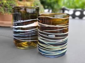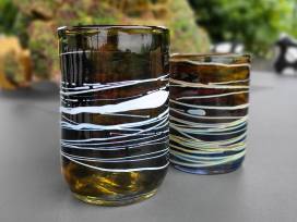 Mismatched but perfectly paired set of two blown glass tumblers hand crafted by Virginia artist Kurt McVay.