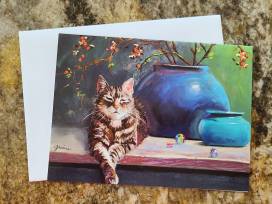 Set of 8 greeting cards and envelopes, four of each cat-themed design by Debbie Graviss