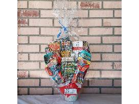 Basket includes $200 worth of scratch-offs and also "100 grand" and "Payday" candy bars!