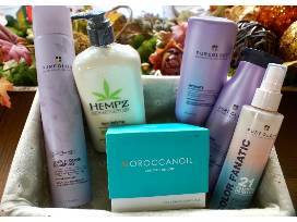 A basket featuring products to nourish, style and rejuvenate your hair! Basket features: Pureology Color Fanatic 21 Essential Benefit, Pureology Hydrate Conditioner, Purelogoly Shampoo, Pureology Hairspray, Hempz Body Moisturizer, and a Moroccan Oil candle. Gift Certificate for $37.50 with Betty or Deanna.