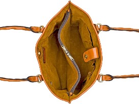- Interior: 1 rear zip pocket, 1 center zip pocket, 2 front slip pockets; faux suede lining, 100% polyester