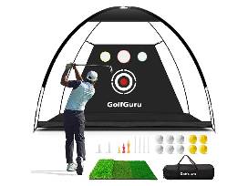 Golfguru Golf Net, 10x7ft All in 1 Golf Practice Net with XL Tri-Turf Golf Mat, Impact Target, 10 Golf Balls, 7 Golf Tees, 2 Rubber Golf Tees, Carry Bag, Golf Net for Backyard Driving Chipping Indoor