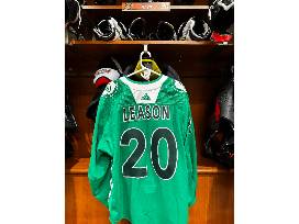 - #20 Brett Leason Anaheim Ducks Green night warm-up jersey