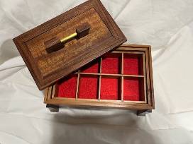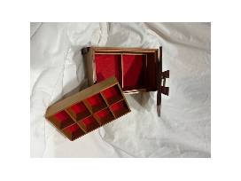 Discover elegance and craftsmanship with this stunning handmade jewelry box, crafted from rich cherry and mahogany woods. Measuring 8 x 5 x 4 inches, this beautiful piece provides the perfect storage solution for your treasured items. The exquisite grain and warm hues of the wood make it a striking addition to any vanity or dresser. Bid now to own this timeless piece!