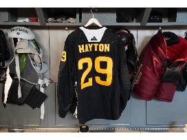 Pre-game worn ASU Night jersey in size 56. This jersey was worn during warmups of the Coyotes vs. Sharks game on April 1st, 2023 and autographed by #29 Barrett Hayton.