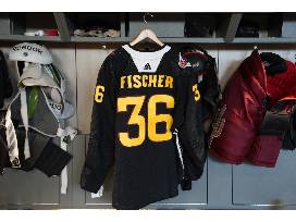Pre-game worn ASU Night jersey in size 56. This jersey was worn during warmups of the Coyotes vs. Sharks game on April 1st, 2023 and autographed by #36 Christian Fischer.