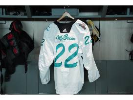 Pre-game worn Los Yotes jersey in size 56. This jersey was worn during warmups of the Coyotes vs. Kraken game on April 10th, 2023 and autographed by #22 Jack McBain.