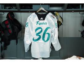 Pre-game worn Los Yotes jersey in size 56. This jersey was worn during warmups of the Coyotes vs. Kraken game on April 10th, 2023 and autographed by #36 Christian Fischer.