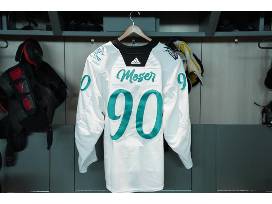 Pre-game worn Los Yotes jersey in size 56. This jersey was worn during warmups of the Coyotes vs. Kraken game on April 10th, 2023 and autographed by #90 J.J. Moser.