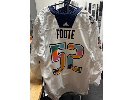 Pride jersey autographed by #52 Cal Foote. (fight strap included). Worn during pre-game skate April 4. SIZE 58.