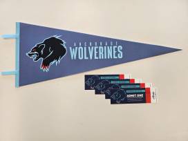 An Anchorage Wolverines Pennant with four General Admission Regular Season game tickets for the Anchorage Wolverines 2023-24 season, excluding the Home Opener Series.