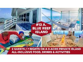 The perfect vacation for the adventurous couple. Blue Reef Island Resort is a 3-acre island that is home to just 5 cabanas, all overlooking the Caribbean Sea. Each cabana has a/c, inside and outside showers and large veranda doors that open up to the views of the Caribbean. The island has 2 restaurants and bars, a private pool, spa and hot tub overlooking sunset views of the Maya Mountains and a spa. This 7-night all-inclusive package for 2 includes reef fishing, scuba diving, snorkeling, freediving, spear fishing, kayaking, paddle boarding and island hopping. At the end of a fun day on the water, the chef will prepare your catch of the day! All meals, local beers and liquor, fishing equipment, diving equipment and laundry services are all included. NOT included are flights, trolling the outer reef for billfish, spa and tips. See more at www.bluereefisland.com. Contact polly@bluereefisland. com to book your trip on a mutually agreeable date within 18 months.