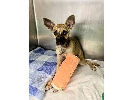 A tiny dog, her front leg badly broken, arrived at LHS afraid, alone, and in a lot of pain. She just lost the only family she knew because they could not and would not provide the care she needed. Fortunately, this small dog we named Banana, came to us and received the care she required...the care she deserved. Her leg was too badly broken to save, so our on-staff veterinarian made the difficult choice to amputate. Banana was cuddled and cared for until she was placed in foster care. After a recovery period, she was ready to find a new home. But she didn't have to go far; her foster family became her permanent family, and she now lives with another three-legged sibling - one who is showing her the ropes of being a tripod.