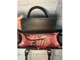This vintage beauty is a true gem, featuring a croc-embossed calfskin that exudes timeless charm. Its luxurious pink cotton lining adds a pop of color and personality to your ensemble. The gold hardware compliments the vintage feel. With a convenient magnetic snap closure, it combines style with practicality. It's the perfect accessory for those who appreciate both fashion and functionality. Dimensions: 11.5" W, 9.5" H, 5.25" D.