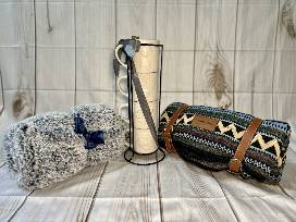 Get ready to cozy up and elevate your coffee game with our "Snuggle & Sip" silent auction package! First, we have a 50" x 60" sumptuous grey lightweight sherpa throw, the epitome of comfort and warmth. It's perfect for those chilly evenings when you want to snuggle in style. Next, the Three Donkeys hearth blanket in Bohemia brings Bohemian vibes to your home. Whether lounging by the fireplace or having a picnic, this 79" x 58" blanket is your trusty sidekick, combining fashion and function. And as if that weren't enough, we're including a set of stacking coffee mugs, each featuring a different woodland creature. Whether you're a coffee connoisseur or a tea enthusiast, these mugs add a touch of whimsy to your morning routine.