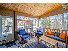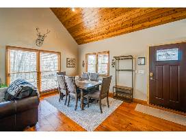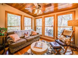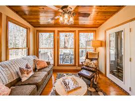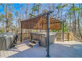 At the back of the home, the expansive deck boasts additional seating, a gas grill, and a private hot tub - the perfect spot for soothing your trail-weary muscles and enjoying the sights and sounds of the surrounding forest, all from the privacy of your fenced-in yard.