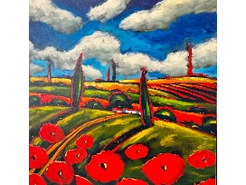 "The technique of painting that I have embraced is definitely the Post Impressionism style made famous by Van Gogh," says Sergey. "I love the simplicity of colors and energy found in his work. The bold, unrealistic colors and expressive brushstrokes of my predecessors are my tool as I try to bring a three-dimensional feeling out from the paintings by using color, perspective and texture. My paintings are like fairy tales - a dream place.I don't see things as realistic. I allow the fantastic to happen. When I travel and paint, the sun, the grapes and the smells of California speak to me. But, anything can motivate me - a picture, a watermelon or even a color."