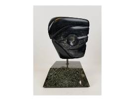Jerry Finn; Spirit of Kia (owl head); chlorite with marble base; 5.5'' x 8.5'' x 5''