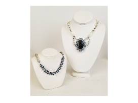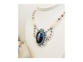 Melinda Kadar; Micuka White & Blue Set; set of two labradorite and Swarovski crystal necklaces, 18'' and 24''