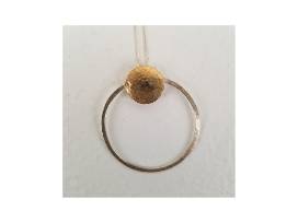 Nicole Shierberl; Earth and Sun Necklace; silver circle necklace with gold 'sun' disc; 20'' circumference