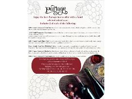1Enjoy the best Partage Winery has to offer with a hand selected mixed wine case! Shipping and tax will be payable with credit card, shipping costs estimated $50-$80. Take home a vintage wine box with two wine glasses and your certificate inside will tell you how to redeem! Includes 2 of each of the following: