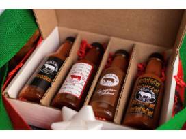 - Collection of Bull River Taco Co.'s house-made hot sauces, including Original, Signature Blend, Chili, and HotHotHot.