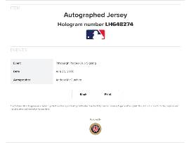 Includes official MLB Authentication Program Holograms (LH648274 and JB809964) and printouts.
