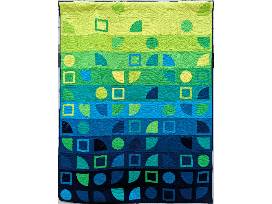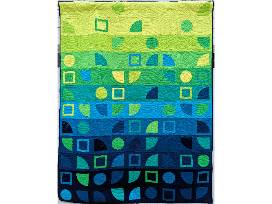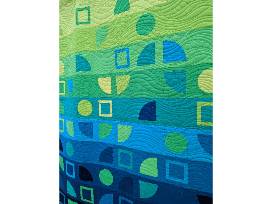 "Bending Bayous" is an art quilt inspired by Houston's bayous and a beautiful reminder to protect our local ecology. The green to blue color shift perfectly supports the inspiration behind the shapes: the bayous of Houston that curve in between the buildings and trees. The 22 bayou systems and waterways that wind through the greater Houston region are a defining and essential resource for our region. They support beautiful, natural ecosystems, provide opportunities for recreation, and remain a vital artery for flood control.