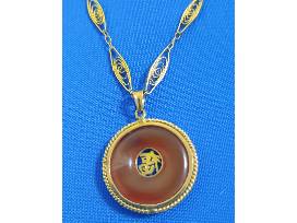 1Carnelian & 14k Gold Pendant w/16" Gold Fill Chain