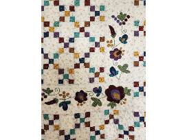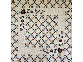 - Front colors: off white with applique and 1 inch squares of various muted colors