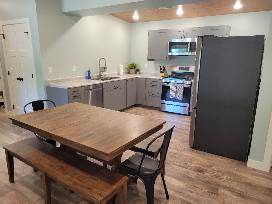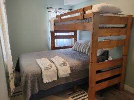 - The Cottage includes 3 bedrooms (sleeps 6-11 people), 2 bathrooms, large gathering space, dining room and full kitchen, private beach access with dock and boathouse, and 1 camper pad with electrical hook-up.
