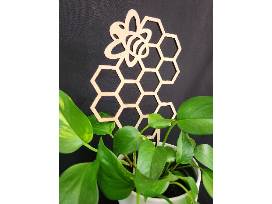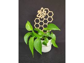 - Details: Pothos plant with a laser cut wooden trellis featuring a bee, measuring 12.25" x 7"