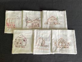 - Details: set of 6 dishtowels, hand embroidered with farm buildings