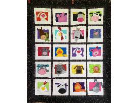 - Note from the quilters: "Mom and I worked on this quilt over several weekends. All fabrics except the background are from Mom's extensive fabric stash! Note white background has paw print pattern."