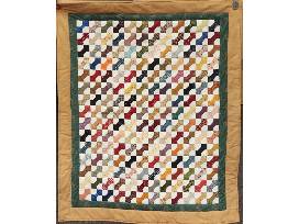 - Note from the quilter: "This "bow tie" came to a member in a bag of donated scraps and fabric. The bow ties are all hand pieced in the "old fashioned" way, something we learned when we were two squares short and had to replicate the tiny 4 inch square using 2 inch pieces! The zig zag stitch was chosen for quilting because the seams are all hand sewn. We have no idea how old these pieces may be, but they appear to be vintage."