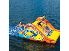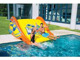 WoW Sports Slide n smile inflatable dock slide: Make any pool a COOL POOL with WOW's Slide N Smile Soaker Sprinkler Pool Slide. This easy to set-up inflatable has WOW water ballast pontoons for secure stable sliding. Built in soaker sprinkler creates a wet fast sliding surface that connects easily to any standard garden hose. Special Shipping Information: This item ships separately from other items in your order.