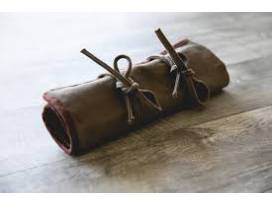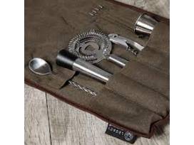 Perfect for the roaming mixologist, the 10-piece Bar Tool Roll Up Kit is a highly-portable and packable waxed-canvas roll-up bar tool set.