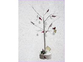 White Birch LED Tree decorated with Cardinals, berries and clear ornaments.