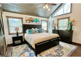 Enjoy 3 nights in this cozy cabin with modern luxuries in rural North Carolina near wildlife, hiking, river rafting, and more. King bed, 2 twin XL bed, 2 full bathrooms, full kitchen with stainless steel appliances, outdoor fire pit, internet.