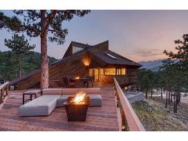 Nestled at an elevation of 7,000 feet on a scenic 3-acre mountain peak in the foothills, this stunning home borders Roosevelt National Forest, ensuring endless outdoor activities right outside the door. The home was designed by renowned architect Charles Haertling.