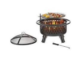 - A two-in-one design ideal for outdoor heating or grilling. Its unique features include a cooking grate for convenient grilling, a mesh screen for safety and a poker. The deep bowl design offers plenty of room for firewood and a 360° view of the fire.