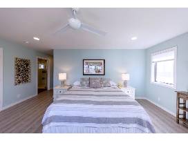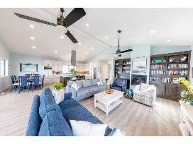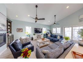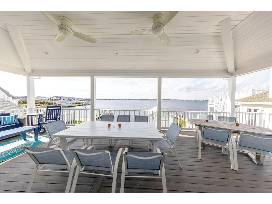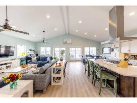 Beautiful, Coastal style, 5-bedroom, 4 bath home with breathtaking views of the bay. This home is located just a short walk to the ocean, with great restaurants and shopping. Escape and relax on one of several decks as you soak in the water views. This home offers a backyard beach patio area, making it easy to drop your raft or kayak in the water. Kayaks and a SUP board, along with beach chairs and sand toys, are available.
