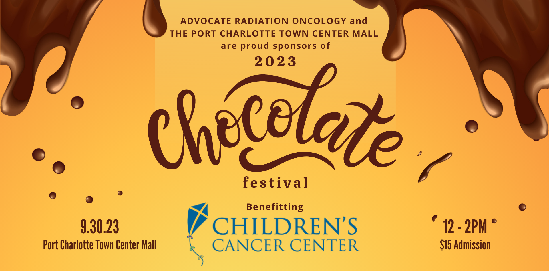 Come celebrate the 6th annual Chocolate Fest sponsored by Advocate Radiation Oncology and The Port Charlotte Town Center Mall. 100% of proceeds from this event will benefit the Children's Cancer Center! At the Chocolate Fest, you can visit various participating local vendors and taste chocolate confections and speciality creations! Grab your to-go box upon entrance to fulfill those chocolate cravings.