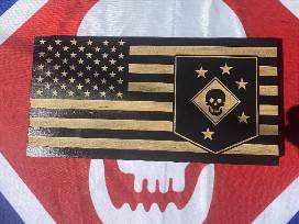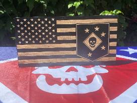 Custom USMC Raider American Flag made by BD3Woodworks LLC, a Veteran owned business by Bill Danic. Measures 10"W x 5"H.