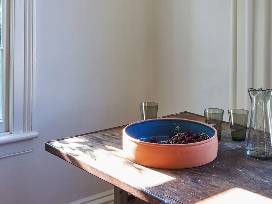 Inspired by a high-walled metal tray from a Paris bistro, this New York Stoneware handmade Bistro Tray is perfect for serving large, shared dishes at a dinner party or for holding hors d'oeuvres at cocktail hour!