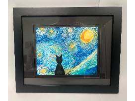 This stunning cat lover's rendition of Van Gogh's night "Starry Night" was created by esteemed local artist, Mike Sondgeroth, just for this very auction! Mike is very well-known in the Topeka art circle and creates paintings with the intention of helping non-profits. This acrylic 8 x 10 inch painting has been matted and framed in a 12 x 16 inch black frame.