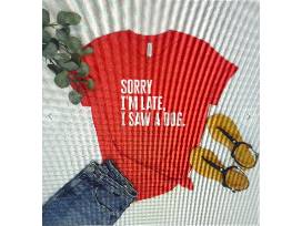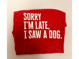 - "Sorry I'm Late" red t-shirt, size medium, bella canvas material